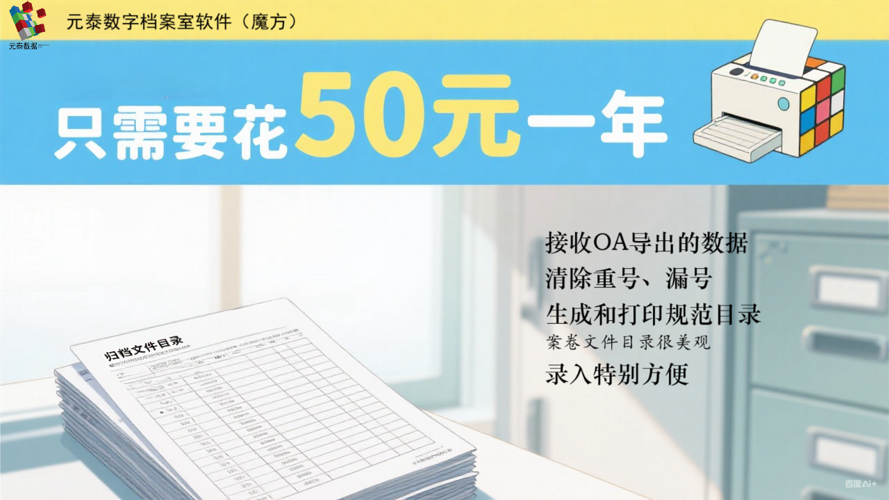 公司自主開發的元泰數字檔案室軟件能夠管理機關單位的電子檔案,掛接紙質檔案數字化副本,與機關單位的OA系統實現數據對接。